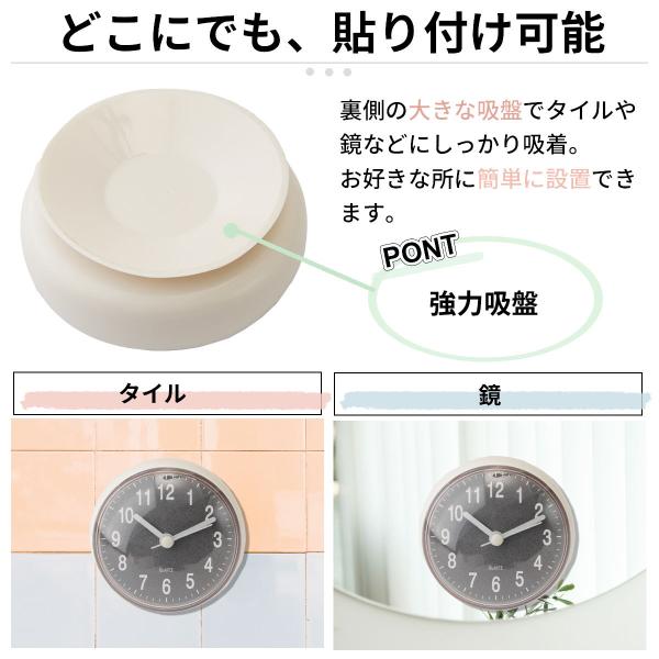 防水時計 お風呂 バスクロック おしゃれ 掛け時計 置き シンプル 浴室 壁掛け 風呂 バスルーム 小型 吸盤
