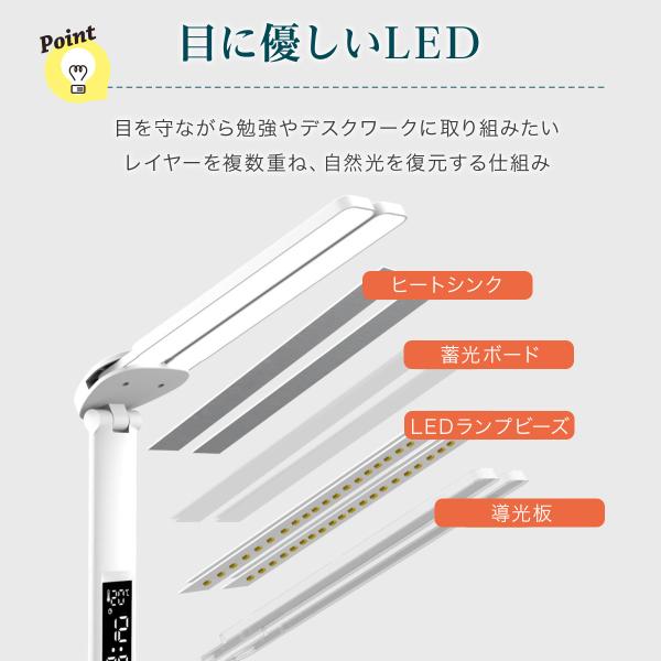 長時間の勉強や仕事で目が疲れにくい目に優しいLEDデスクライト。