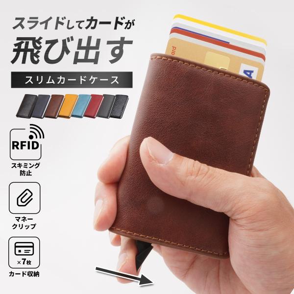 カードケース 薄型 スリム メンズ 大容量 スライド式 レディース PU レザー アルミ キャッシュレス ミニ財布 マネークリップ