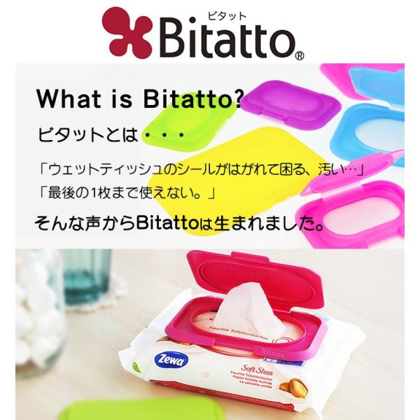 ウェットシートの取り口シールについたゴミやホコリや髪の毛などで、いつの間にかシールがはがれて乾燥して最後まで使えない!そんなイライラをBitattoが解消してくれます。