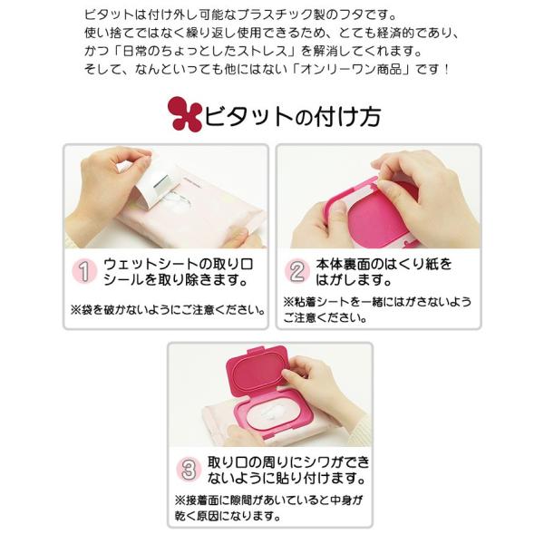 ビタットは、ウェットシート等の取り出し口につけて使うプラスチック製のフタです。