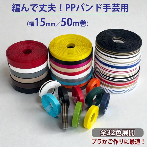 PPバンド 手芸用 50m巻 幅15mm 手芸用テープ PPテープ プラカゴテープ かごバッグ 手芸用テープ かご編み ハンドメイド 素材 プラカゴ バッグ ベトナム