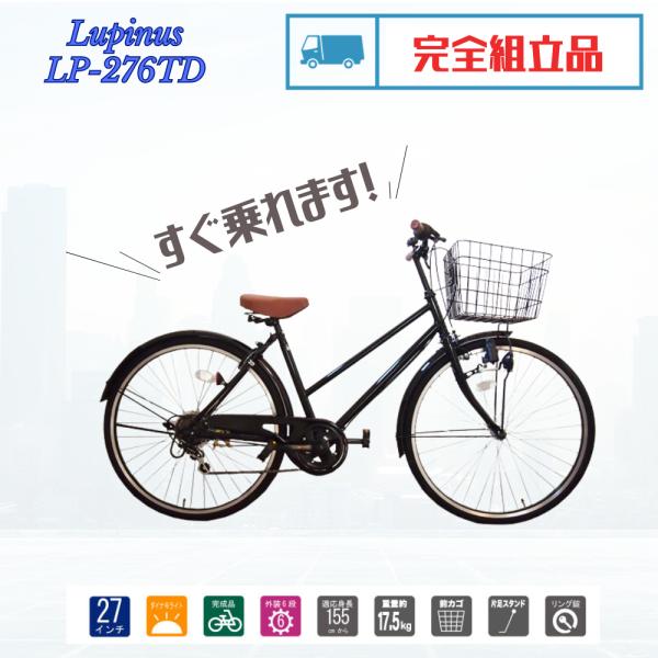自転車 27インチ 完成品 おしゃれ Lupinus ルピナス LP-276TD シティサイクル ダイナモライト シマノ製6段変速 6カラー