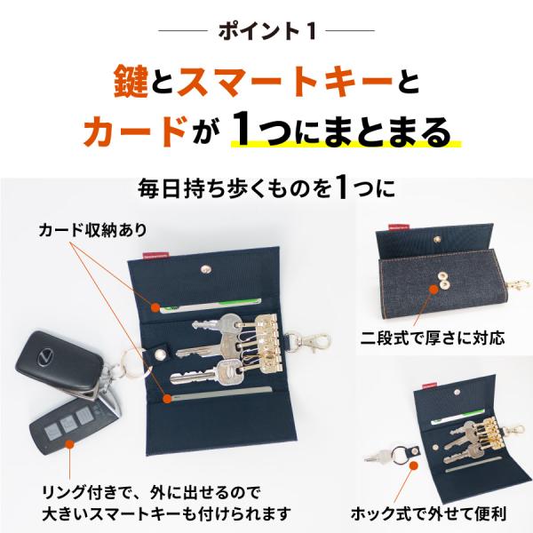 キーケース 日本が誇るデニム スマートキーケース スマートキー メンズ レディース キーリング キーホルダー コンパクト カード キーポーチ 車 鍵ケース