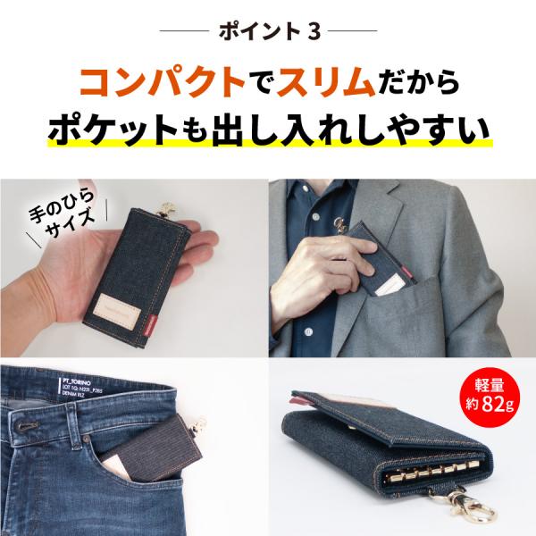 キーケース 日本が誇るデニム スマートキー カード 6連 メンズ レディース 6連リング シンプル コンパクト 三つ折り メンズキーケース レディースキーケース