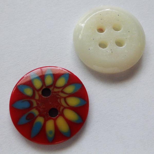 ヴィンテージガラスボタン 17.4mm厚さ3.5mm +ヴィンテージ樹脂ボタン 17.4mm厚さ2.5mm 2種類2個づつ 合計4個を送料無料でクリックポストでお送りします。