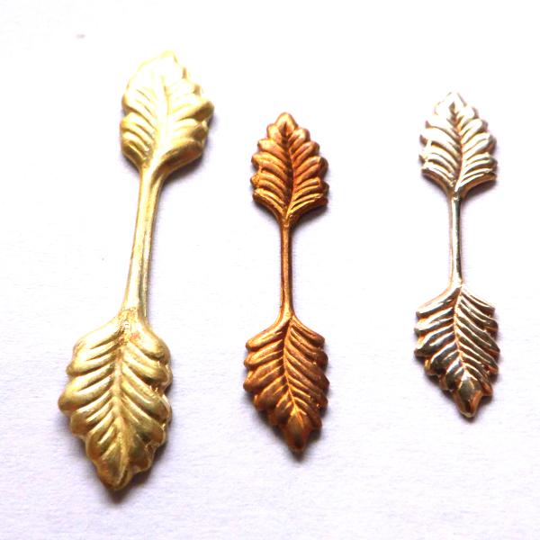 ブラス製品なので、割と簡単に曲げたり、リーフの形を変化させることが出来ます。プラやアクリルのビーズなら曲げて接着をつければ、穴の無いビーズのバチカン代わりになると思います。ハスケルは座金にこのリーフをワイヤーで止付けて上にカボションなどを設置するという使い方をしていたようです。