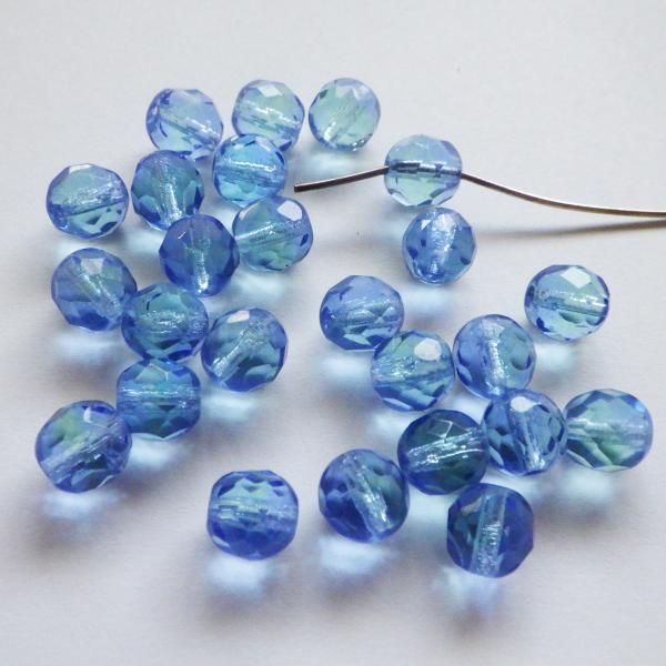 希少なTwo-Tone ヴィンテージ WG.クリスタルビーズ 7mm 淡いブルーと黄緑の交じり 25個 1セット