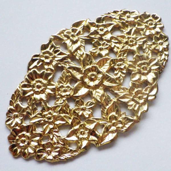 ルシアンゴールド加工座金 フラワー&リーフ 37.5x22.7mm 1枚