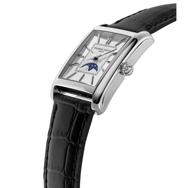 【フレデリック・コンスタント FREDERIQUE CONSTANT クラシック カレ ムーンフェイズ オートマチック FC-333S4C6 腕時計 自動巻き メンズ 1920年代のアールデコを基調とした、タイムレスなエレガンスを凝縮した自動巻き時計コレクション「クラシック カレ オートマチック」。新作は、ムーンフェイズを搭載しました。レクタンギュラーケースに収められた文字盤にはソレイユ装飾、内側にはスクエアのミニッツトラックに囲まれたギョーシェ装飾のシェブロンモチーフをあしらいました。12時位置のブランドロゴと対をなすように、6時位置にはムーンフェイズを配置。クラシカルな意匠の中に、詩的なムードを添えました。[フレデリック・コンスタント FREDERIQUE CONSTANT 2026 新作]】