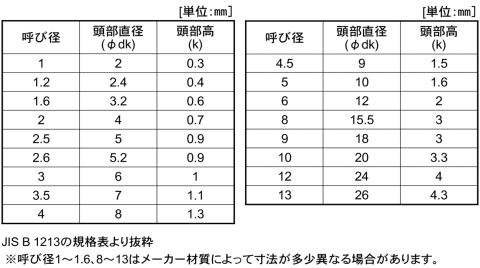 ■説明:締め付け部品の穴に軸部を差し込み、軸の端をかしめて継手とする。かしめ後、取り外しの必要がない場所に使用します。■規格:JIS B1213に基づいています。■材質:銅■処理:生地(処理なし)■寸法の呼び方:(呼び径)x(長さL)