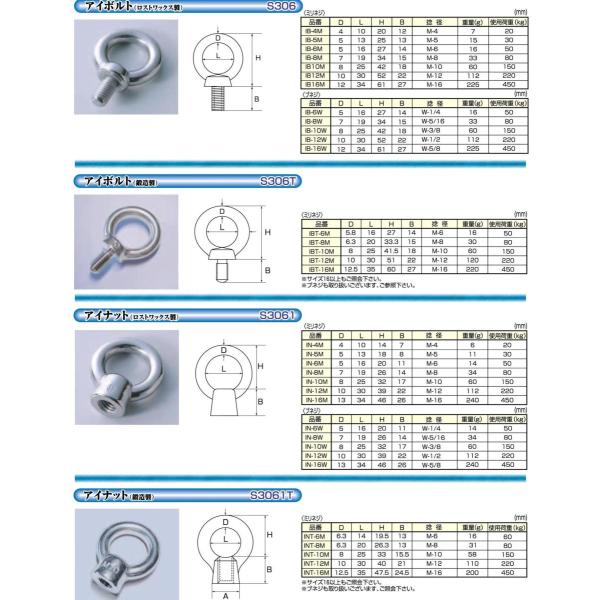 アイナット(ロストワックス製) IN-12W(ブネジ)材質 SUS304参考使用荷重 220kg信頼製の高いひめじや製