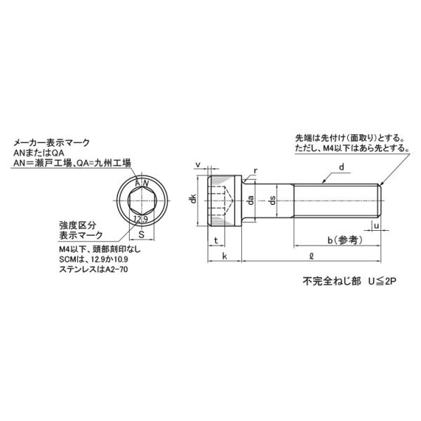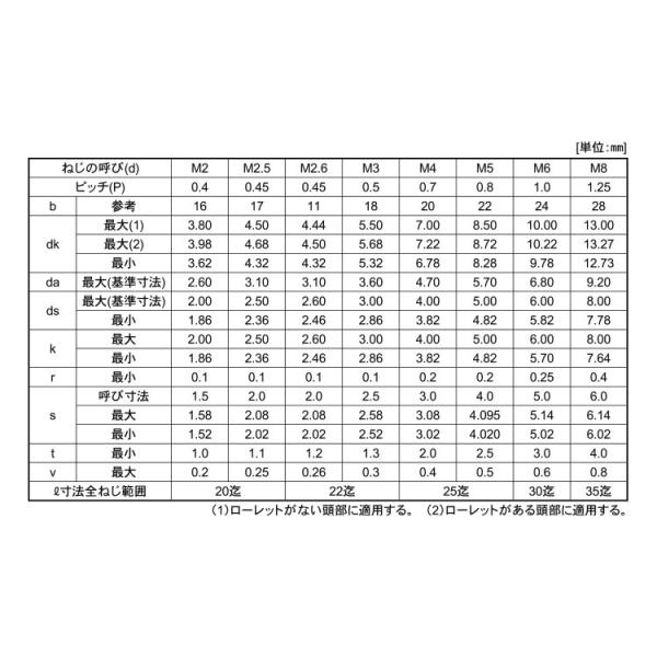 ねじ部形状 : 全ねじ 並目 [ピッチ=0.7mm]