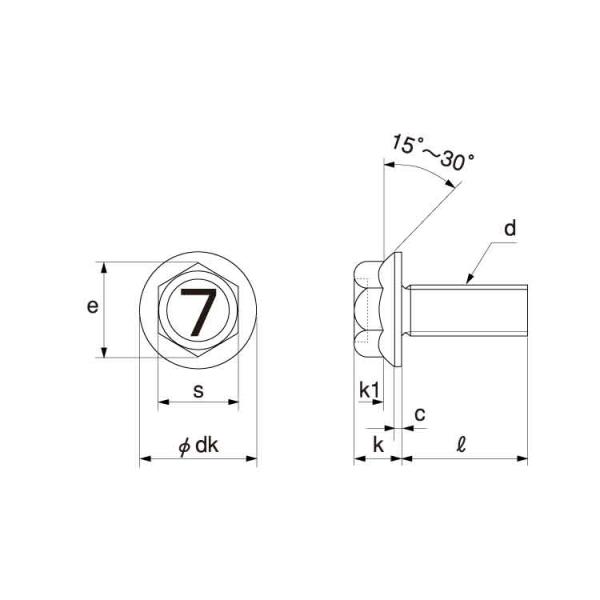 頭部形状 : 六角アプセット フランジ&セレート付き