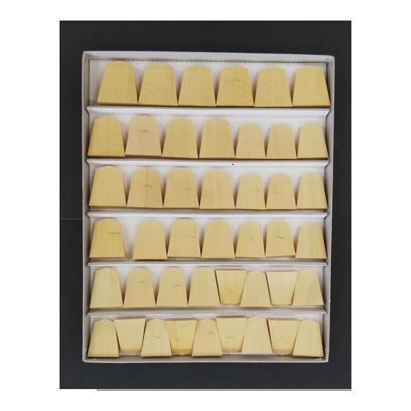 「富士駒の会」の富月師が制作した駒木地です。材料は薩摩黄楊で、素直な印象の柾目です。予備駒含め44枚入り。※桐の駒箱は付属しておりません。紙箱にお入れします。※「送料無料」商品ですが、銀行振込手数料、商品代引手数料は別途かかります。