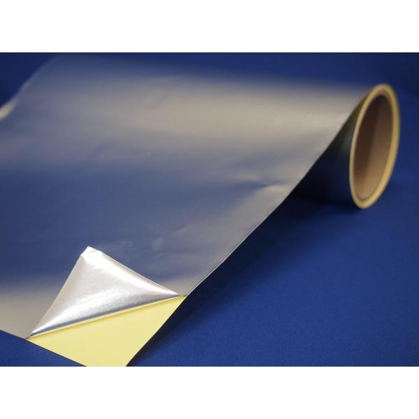 0.05mm厚のアルミ箔を基材として、片面に強接着タイプの粘着剤が付いたテープです。