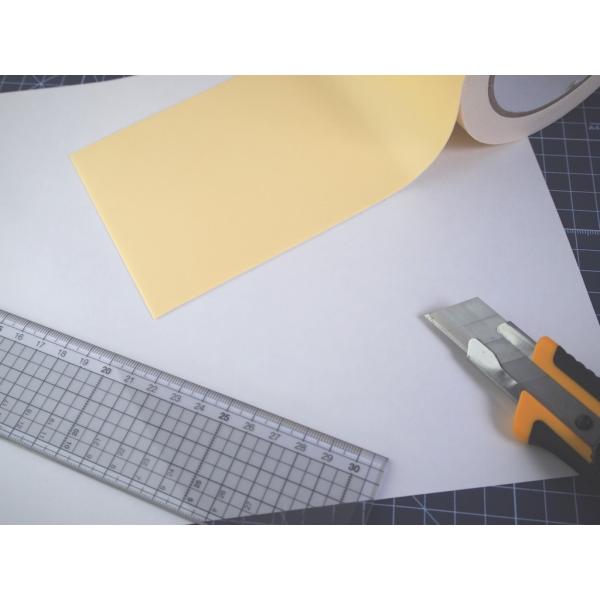 粘着テープを特殊形状にカットしたい場合に、加工用台紙として使用されています。