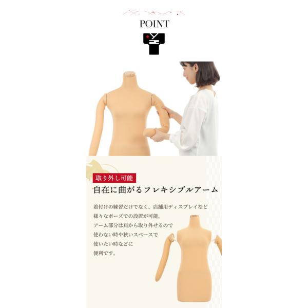 商品名:着物 着付け 練習用ボディ 腕つき和装用トルソー マネキン フレキシブルアーム 白 肌色 ホワイト ベージュ