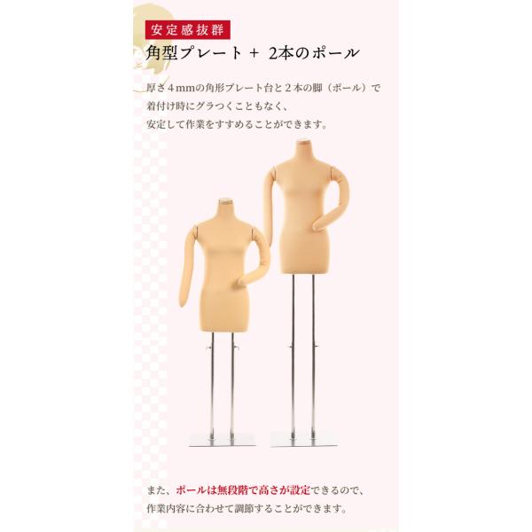 厚さ4mmの角形プレート台と2本の脚(ポール)で着付け時の安定感も抜群!