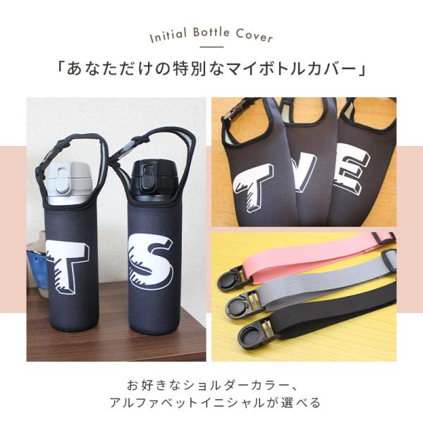 水筒カバー イニシャル デザイン ペットボトル カバー ショルダー ストラップ 子供 肩掛け 500ml 600ml ポイント利用