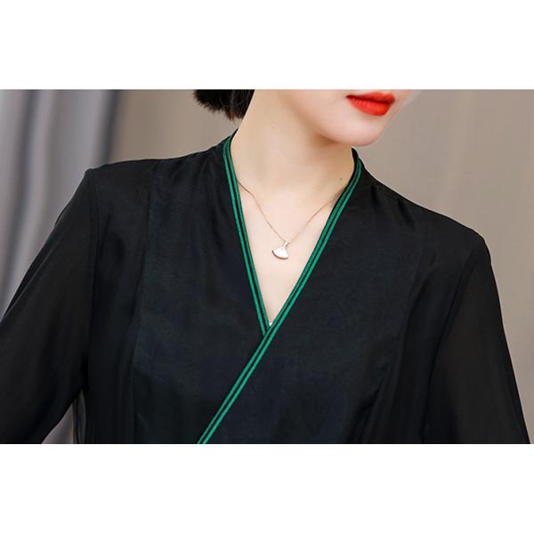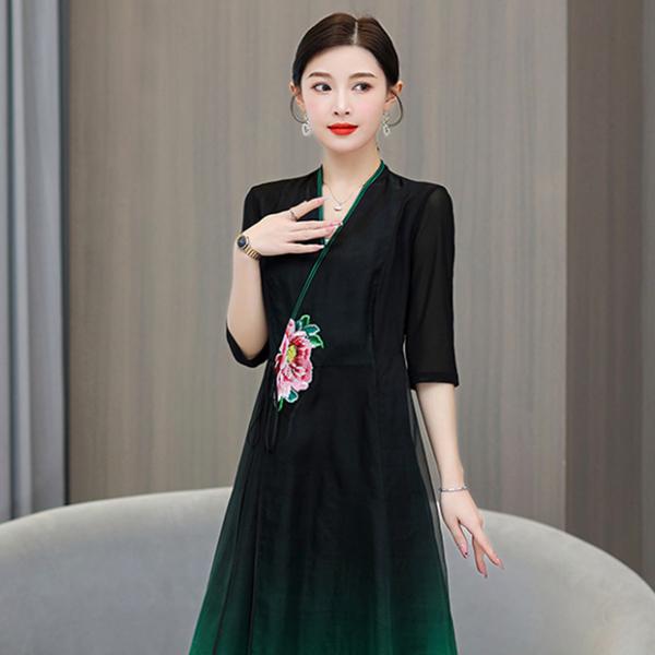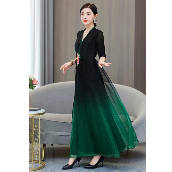 チャイナドレス ★chaiはポイント最大3倍★ チャイナ服 グラデーション ワンピース 五分袖 上品な風合い Vネック ロング丈 普段着 二胡衣装 旗袍 zl375