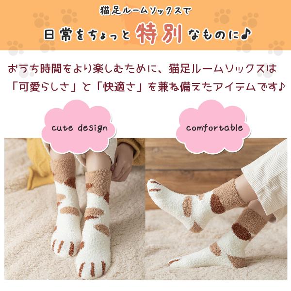 靴下 ソックス ルームソックス レディース もこもこ 猫 猫柄 動物 厚手 防寒 秋冬 ぽかぽか 可愛い かわいい