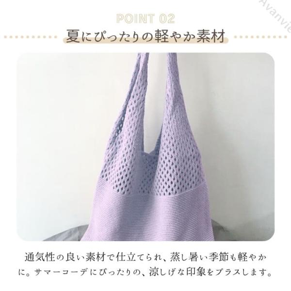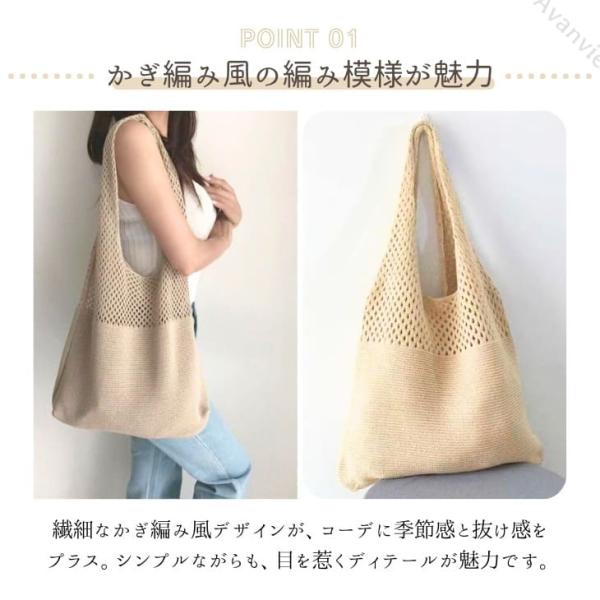 【お得】かぎ編みバッグ ニットバッグ トートバッグ 肩掛け 軽量 透かし編み カジュアル おしゃれ お出かけ【z128】