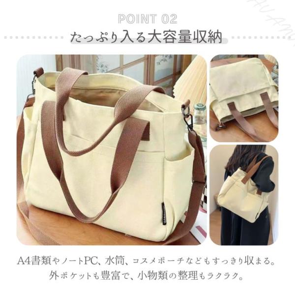 ショルダーバッグ トートバッグ ユニセックス キャンバス地 大容量 サイドポケット付きショルダー紐 収納力抜群 通勤 通学 カジュアル【z157】