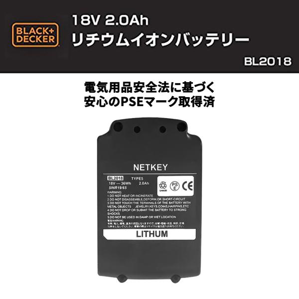 ブラック&デッカー 18Vリチウムイオンバッテリー AUTO01、AUTO01K2、BDCSP18、BDUSB18、BDH18Bなど様々な電動工具に対応2000mAh大容量