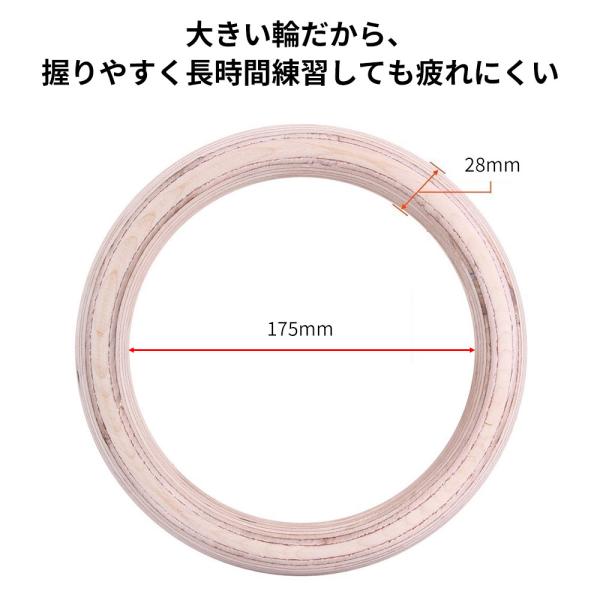 天然木製吊り輪 家庭用 アウトドア用 体操つり輪 ボディビル 良い筋トレのために