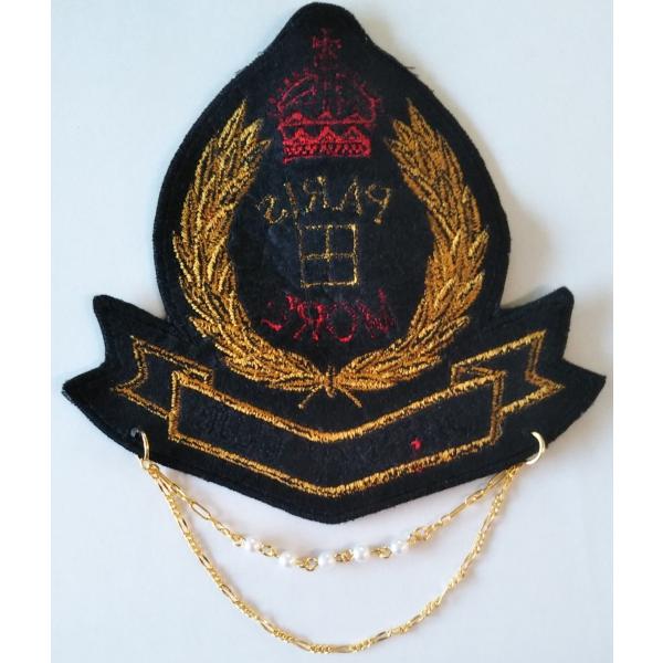 刺繍ワッペンにチェーンを付けた大き目のエンブレムです。
