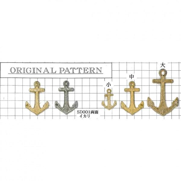 柄入りイカリチャーム 3ヶ入り(国産)全2色 ゆうメール送料無料 全サイズ一律価格 日本製 アクセサリーパーツ メダル バックチャ ーム 金属 メタル