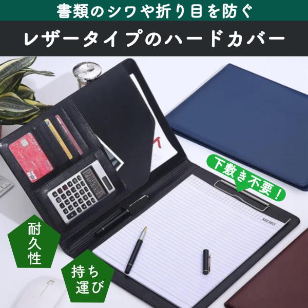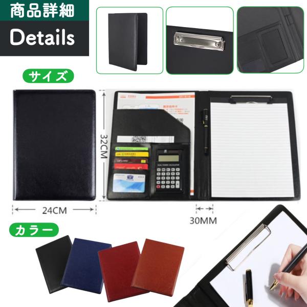 バインダー a4 文房具 二つ折り おしゃれ クリップボード ファイル クリップ ポケット付き ペンホルダー 多機能 ノート 電卓ポケット付き 便利