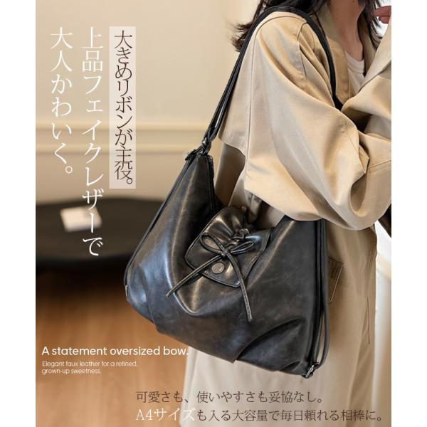 大きめリボンが目を引く、フェイクレザーの2WAYバッグ。
