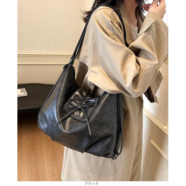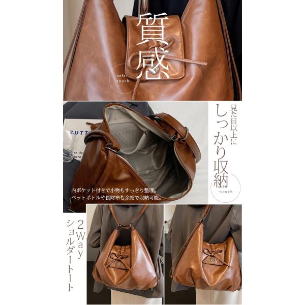 バッグ レディース フェイクレザー リボン ヴィンテージ風加工 2way 肩掛け ショルダートート リュック ブラック ダークブラウン フェイクレザーリボンバッグ