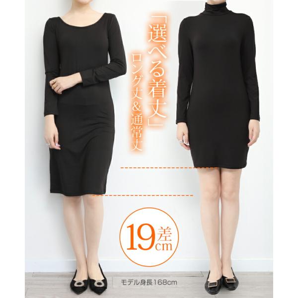 裏起毛 ワンピース マキシ ロングワンピース インナー 長袖 レディース タートル ハイネック 深あき 暖か ペチコート