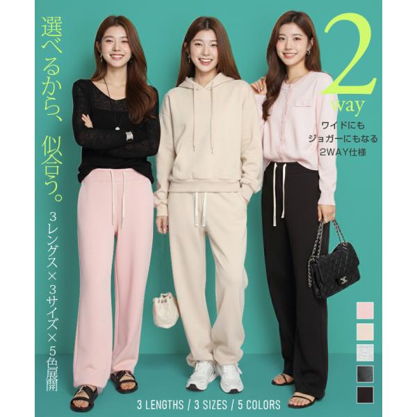 パンツ ワイドパンツ レディース 春 ストレッチ ズボン 美脚 ゆったり スウェット 大きいサイズ 体型カバー 選べる丈 2wayジョガー ピンタック ダブルウエスト