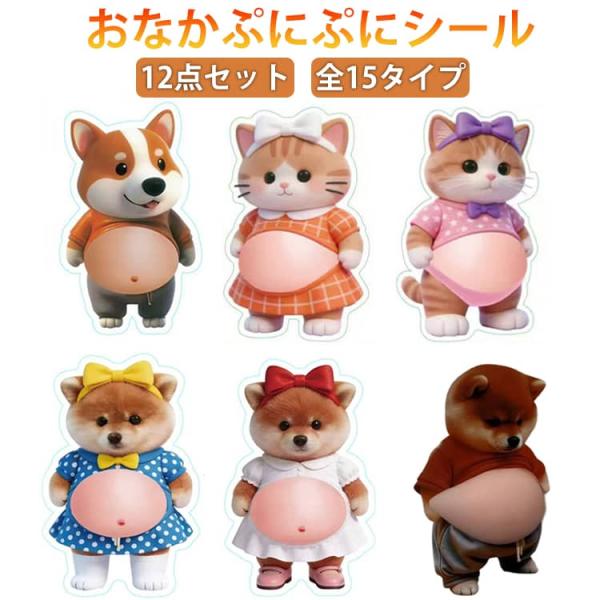 12点セット お腹ぷにぷにシール おなかシール 猫 犬 ぷにぷにシール シール もっちりシール 12点セット 3D柔らかい お腹 ぷくぷくシール お腹