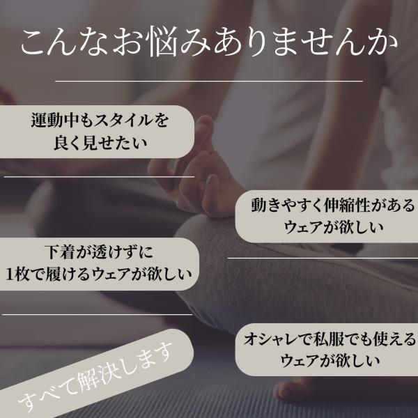 ヨガ、ジム、ジョギング、トレーニングなどのスポーツはもちろん、