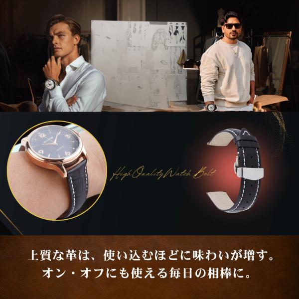 腕時計 ベルト 時計バンド 替えバンド バンド 革ベルト Dバックル ブラック ブラウン 黒 茶 時計ベルト 腕時計ベルト 革 白ステッチ18mm 19mm 20mm 21mm
