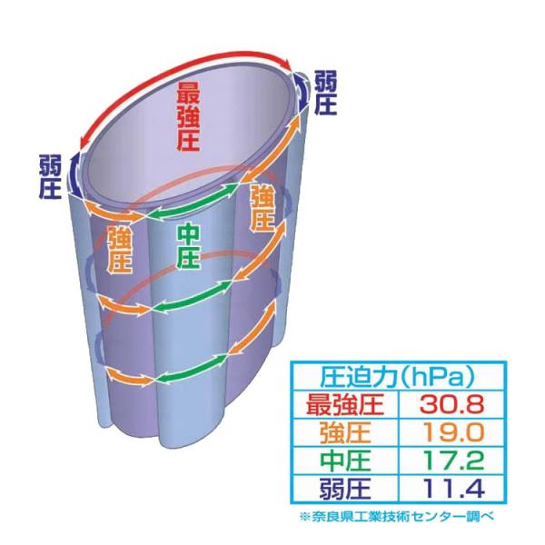 ☆3本の弱圧ラインと、その間にある強圧ラインとが組み合わさった強弱着圧もみもみマッサージ。