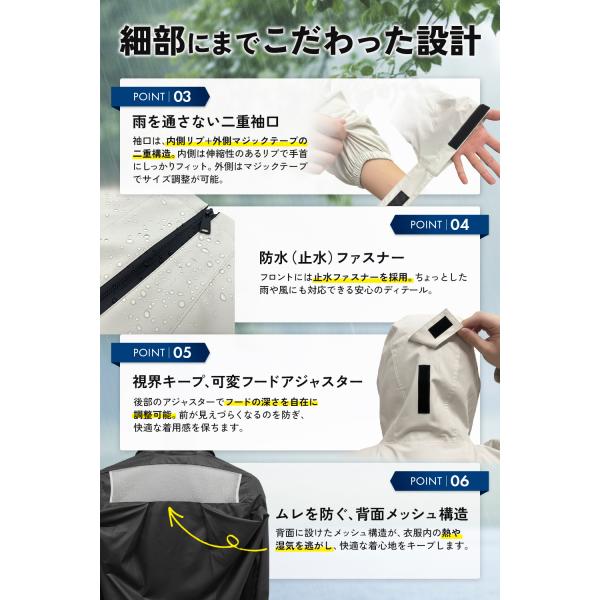 ・雨を通さない二重袖口