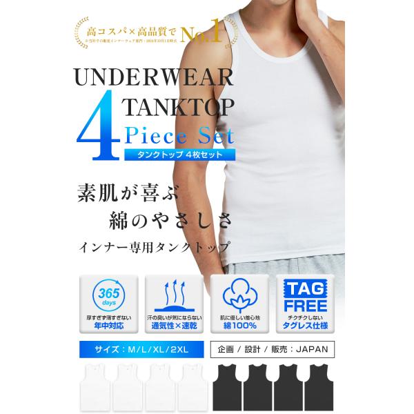 タンクトップ メンズ インナーシャツ 肌着 Uネック 綿100% 4枚組 BALLOT バロット