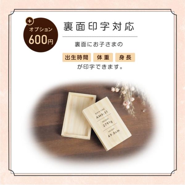 オプションで裏面に出生時間 体重 身長を刻印できます。