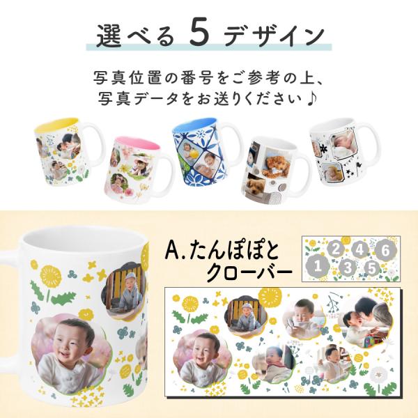 【写真プリント無料】写真6枚プリント マグカップ 写真入り かわいい カラフル オシャレ 写真 入れ コップ ホワイト レンジ対応 食洗器 ペット カップル ギフト