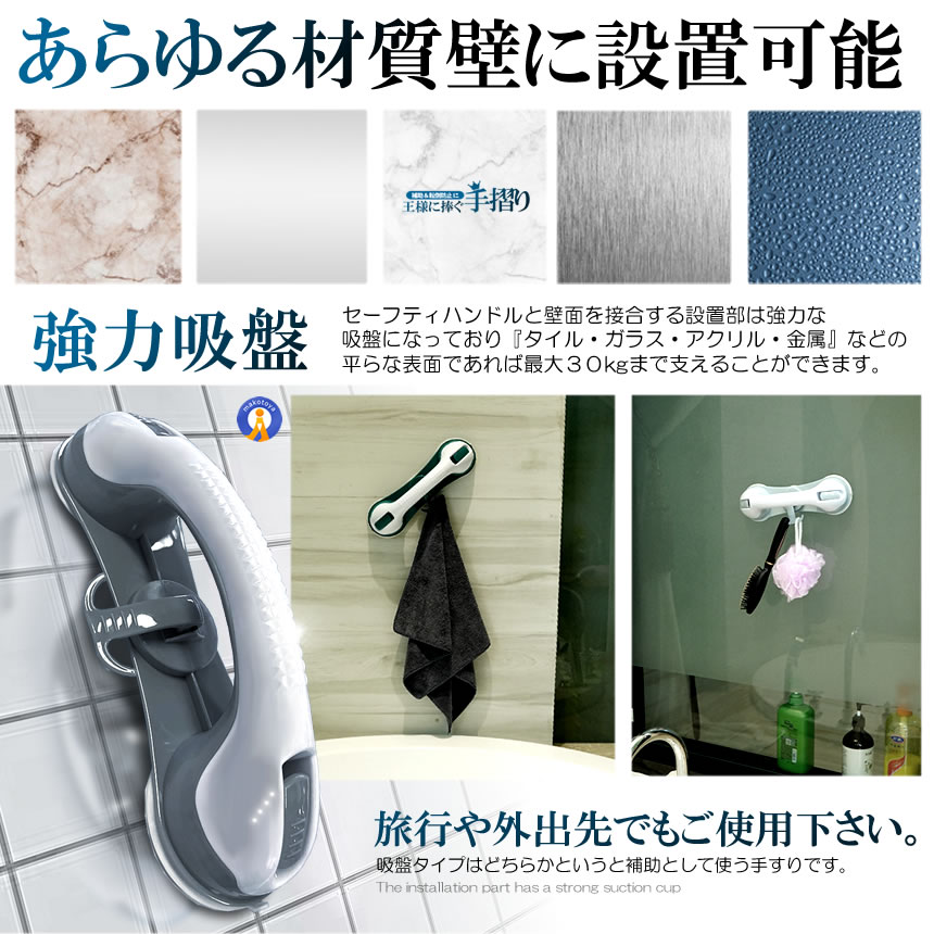 2個セット セーフティハンドル 風呂 手すり 立ち上がり 補助 転倒防止 取っ手 手摺り 浴槽 浴室 吸盤 バス用品 玄関 強力吸盤 高齢者 子供 介護 FS001