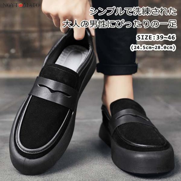 スリッポン メンズ ローファー ビジネスシューズ スニーカー 紐なし 厚底 スエード調 PU 紳士靴 ぺたんこ フラット カジュアル 履きやすい 歩きやすい 黒