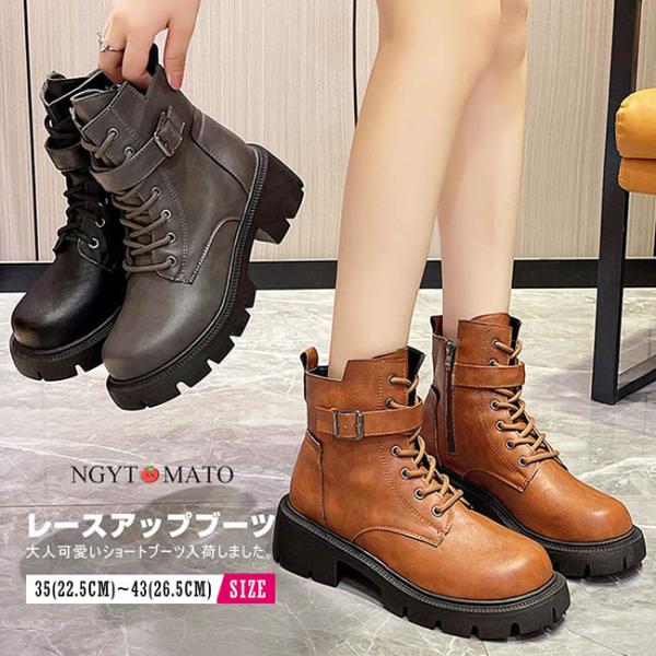 ショートブーツ 厚底 レースアップブーツ 男女兼用 太めヒール ブーツ サイドジッパー 編み上げブーツ ショート丈 メンズ 履きやすい 歩きやすい おしゃれ 黒