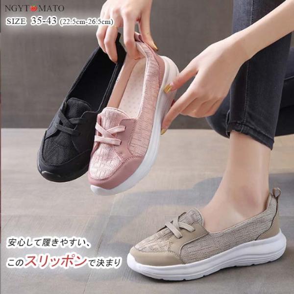 スリッポン レディース 軽量 きれいめ 黒 スニーカー 紐なし 通気性 伸縮性 婦人靴 フラットヒール ぺたんこ 履きやすい 歩きやすい おしゃれ 春 夏 通学 通勤