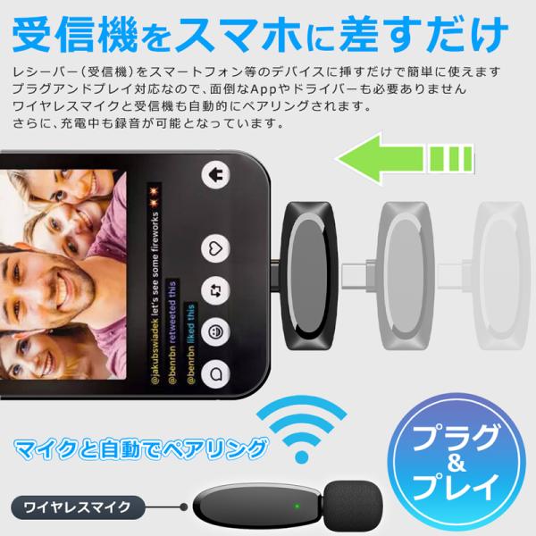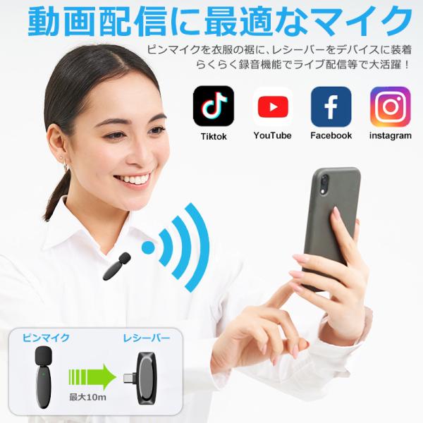 爆買 ワイヤレスマイク type-c lightning 無線マイク ライブ配信 動画配信 ピンマイク ラべリアマイク ノイズキャンセリング 低遅延 高音質 idap4